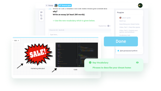 Окрім звичайних вправ, ми пропонуємо учням інтерактивну платформу для перегляду відео, читання книжок, навчання за найкращими та міжнародно визнаними підручниками, виконання домашнього завдання та творчості. Це дає змогу досягати успіхів у навчанні значно швидше.
